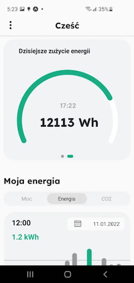 After downloading the application, go through the registration process in order to activate the acquisition of data from the meter assigned to a given client. Registration requires receipt of a code from Nowa Energia Dystrybucja.