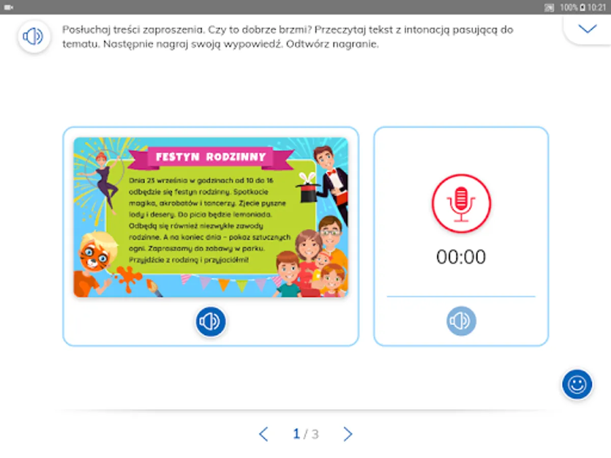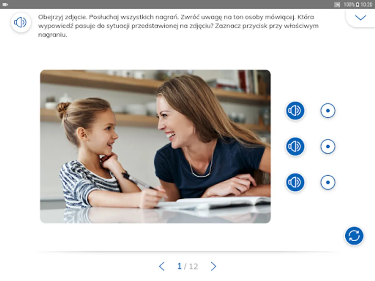 • accessibility settings module in accordance with WCAG - a system of settings for exercise view and other functions that allow for individualisation of work with the program (e.g. choice of voice-over, switching off sounds),