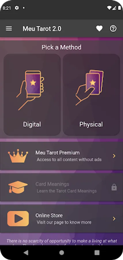 Embark on your tarot journey today with Meu Tarot and uncover the wisdom of the cards, enhanced by the power of our Premium features!
