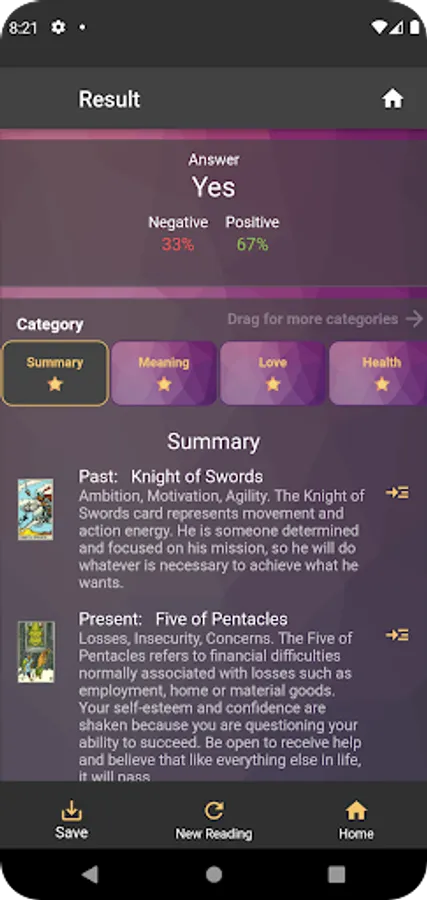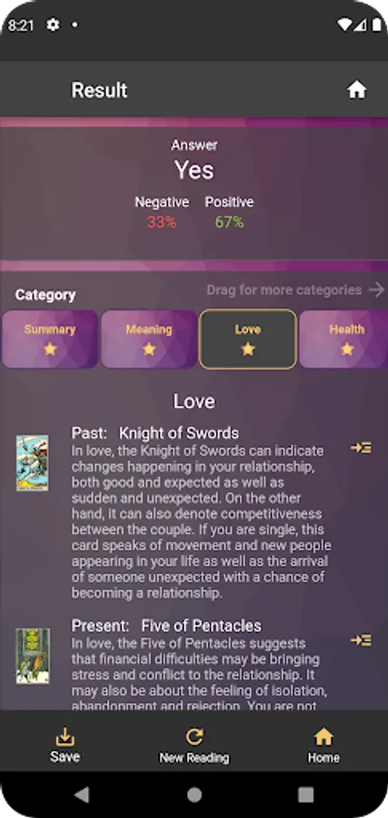 💾 Save your readings: Track your tarot journey by saving your readings in the app.