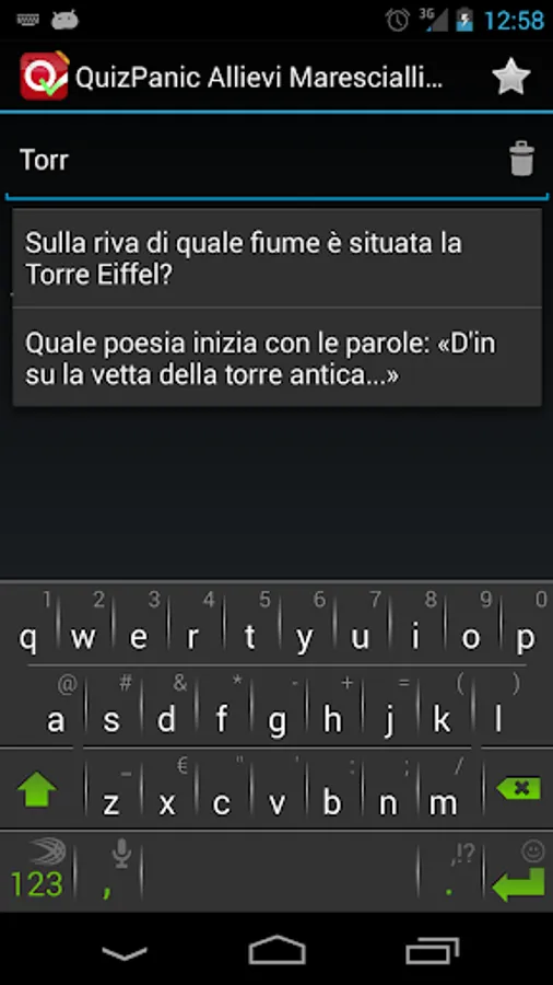You insert a part of the question of "Concorso per l'ammissione al 5° corso triennale di 300 allievi marescialli del ruolo ispettori dell'Arma dei Carabinieri" (an italian competitive exam) and the app will give you the right answer in less than half second!