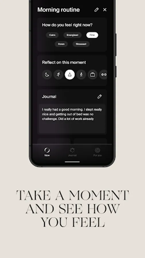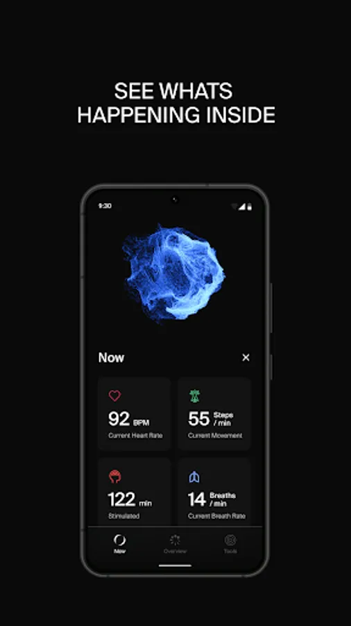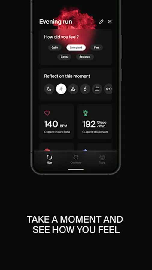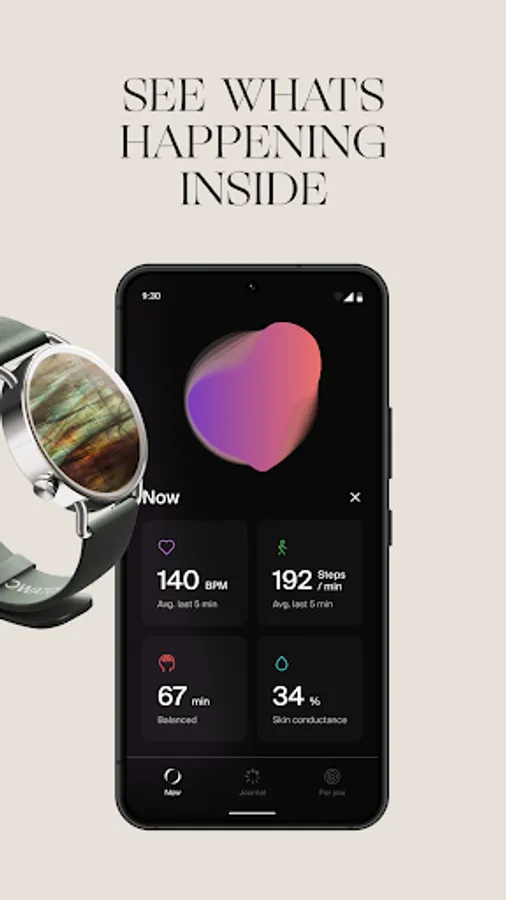 The NOWATCH app is your compass for checking in on mind and body, and accessing recommendations for restoring balance.