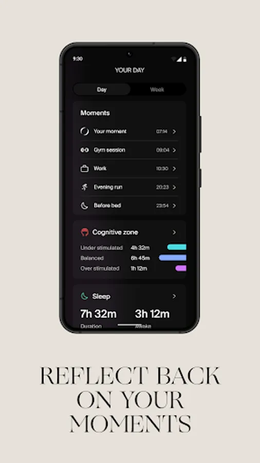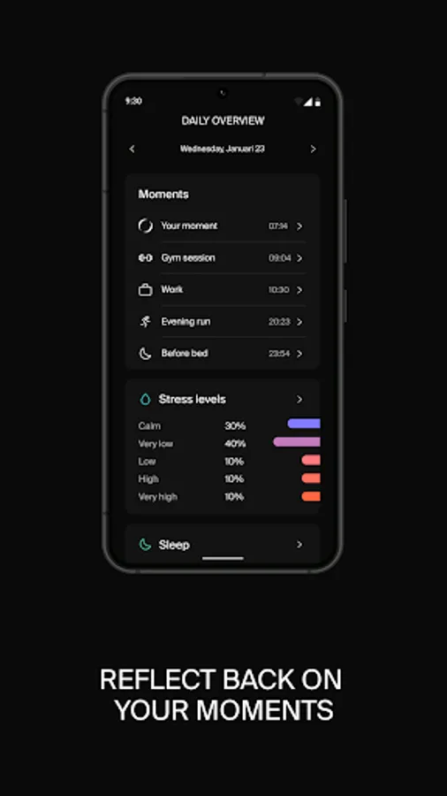Get feedback on your movement, stress and sleep and capture moments throughout the day.