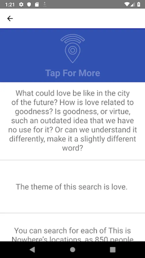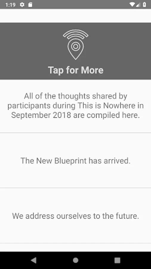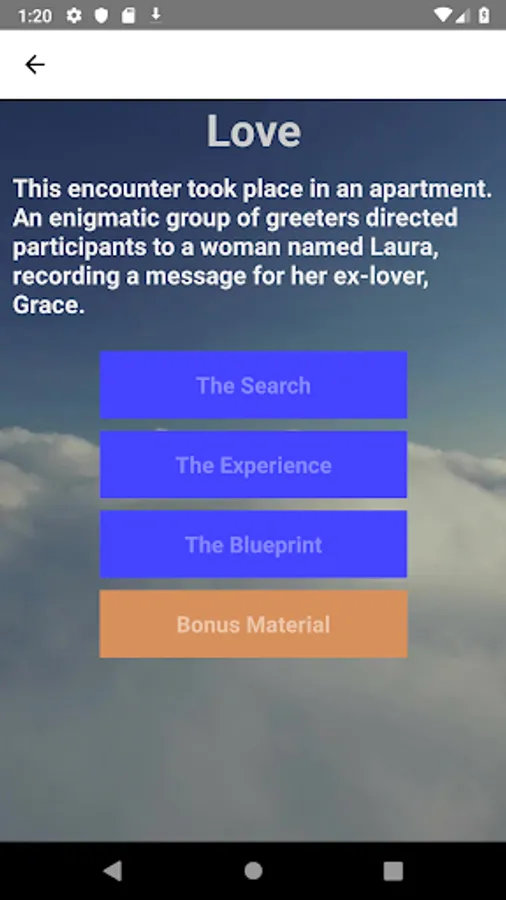This app is the final record of that experience, featuring the original scavenger hunts, the complete audience-contributed blueprint, and notes, scripts, and photos for each of the scenes.