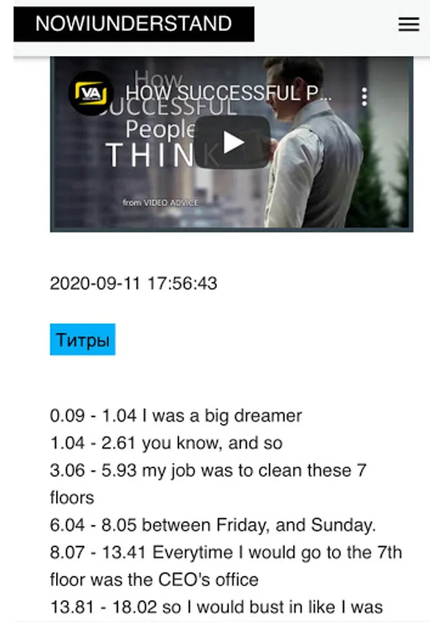 Именно поэтому в нашем приложении ко всем видео роликам имеются тексты (скрипты) к ним. Предварительное прочтение текста к ролику перед прослушиванием в разы упростит вашу задачу. А использовав данную методику, вы за короткое время научитесь самостоятельно понимать на первый взгляд сложную английскую речь.(Нажав на незнакомое слово в тексте вы можете посмотреть его перевод )