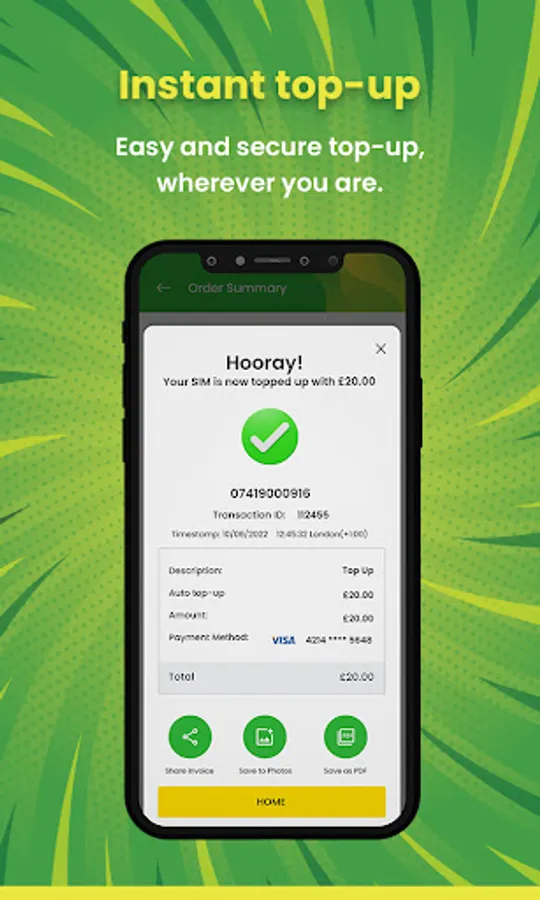 Account top-up has never been so simple and fast. Just select the amount, enter your number and BOOM; your account is topped up.