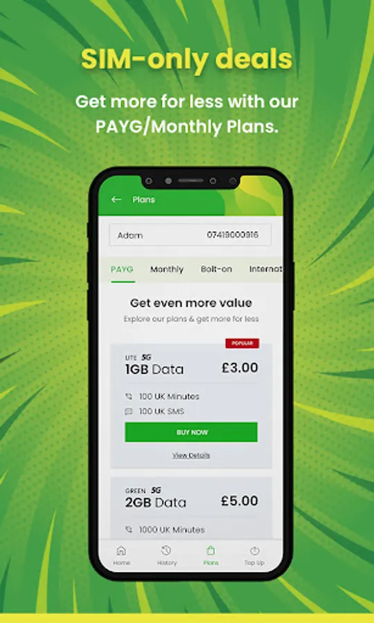 Its sleek, fast, and buttery-smooth interface gives you a personalized experience and lets you access all features in a simple and secure way. Buy your favourite SIM-only deals, PAYG Plans, or data add-ons with a few taps and get notified about exclusive offers, and understand when to upgrade your mobile plan.