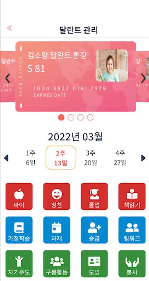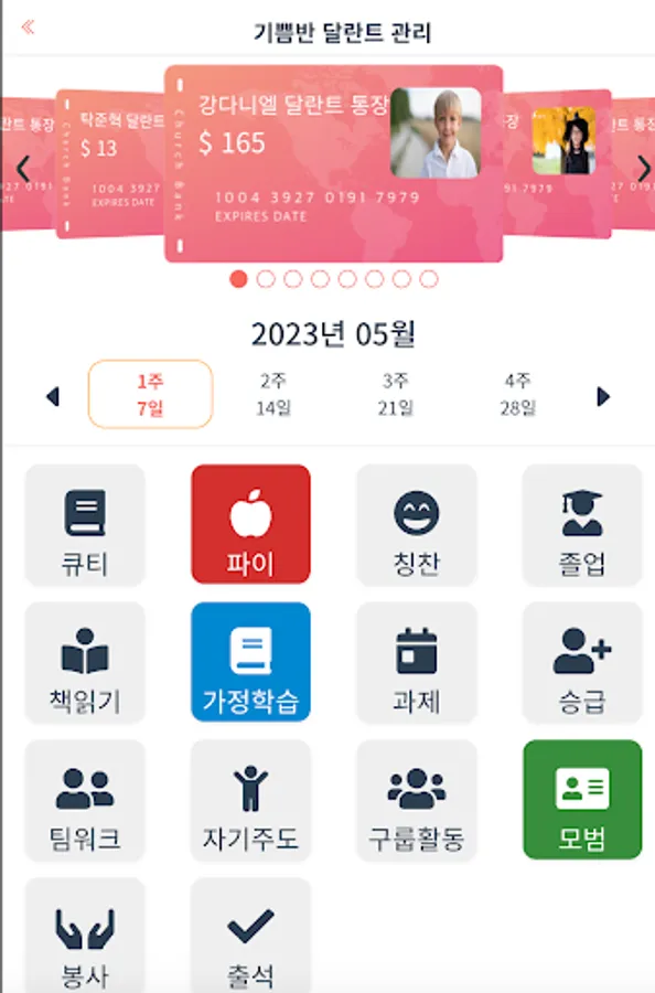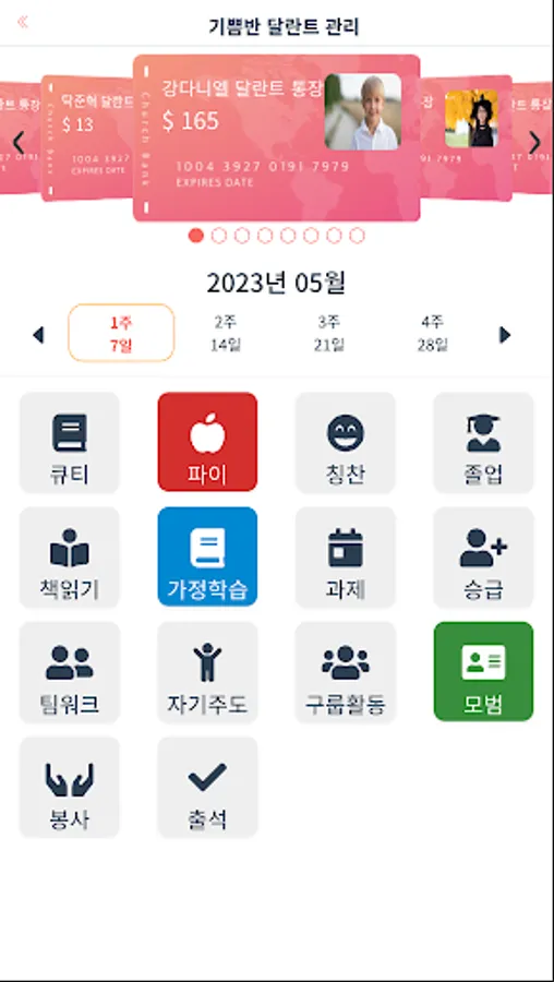 학생별 달란트 현황을 한 눈에