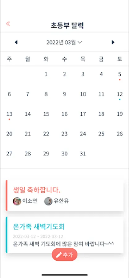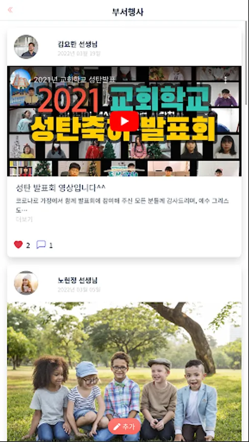 부서/교회 행사 공유, 알림