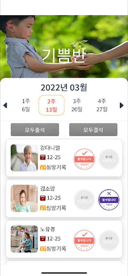 교역자/교사/학부모가 함께 이용가능한 주일학교 관리 앱입니다.