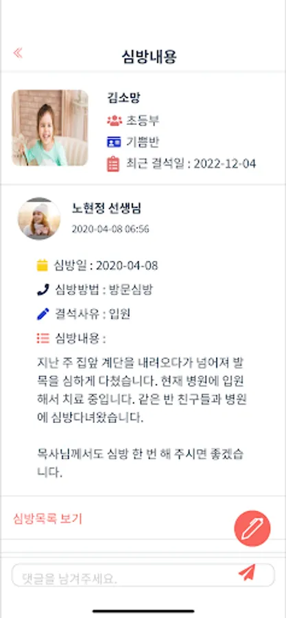 학생심방 입력, 담당자와 심방내용 공유