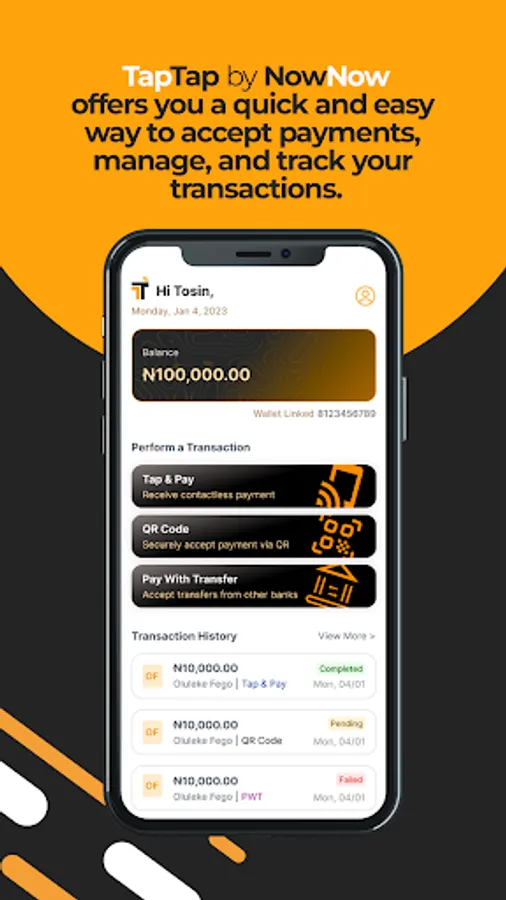 With TapTap by Nownow, you no longer have to worry about getting a physical POS device to receive payment. Download the app today and start receiving payment instantly