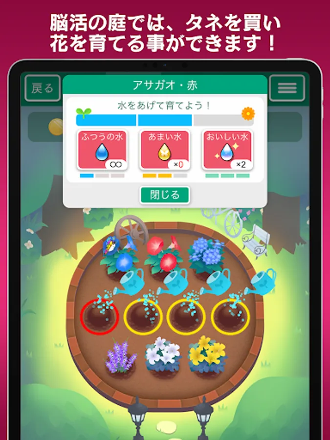 In "Brain Activity Garden", you can use the coins obtained from training to grow flowers in the garden.