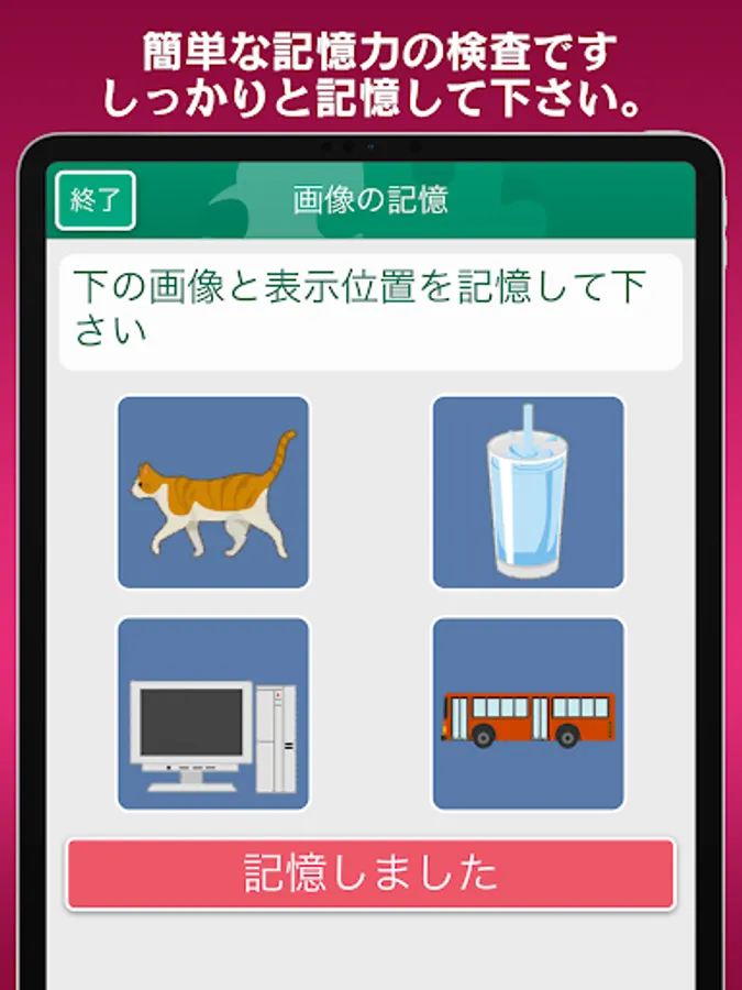 Evaluate the presence or absence in a short time. (It can also be used for simple diagnosis of cognitive function)