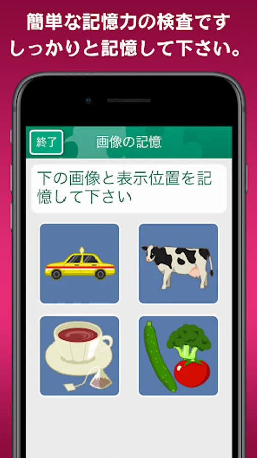 Memorize the pictures that are displayed continuously and tap them in order! Ideal for instant memory training.
