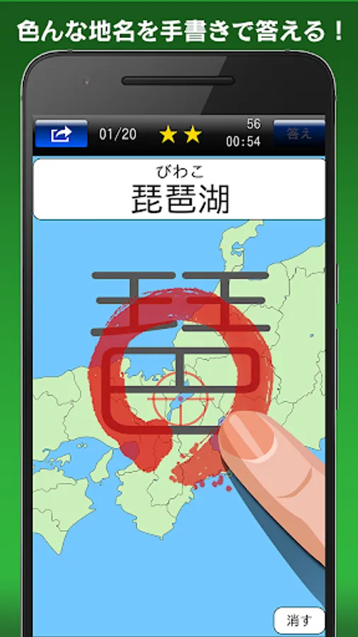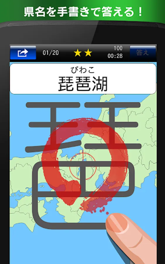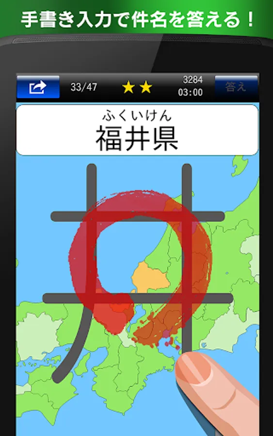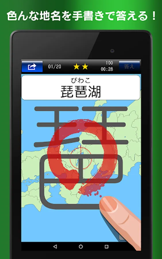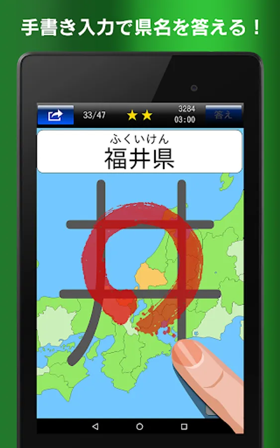 and "dictation" in the mode you can answer by writing with a finger the place name on the screen. Until the beginner to advanced, you can challenge the 1200 questions or more of the problems.