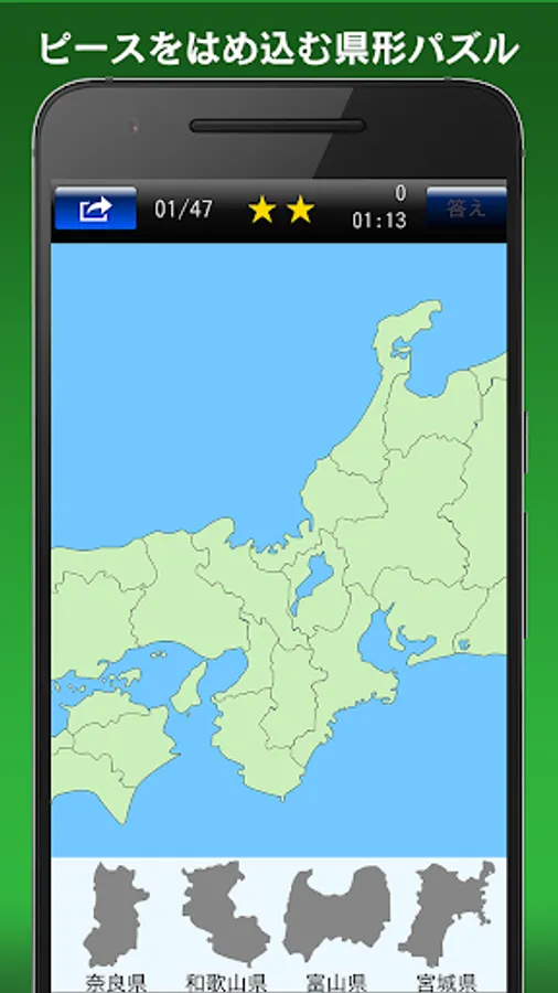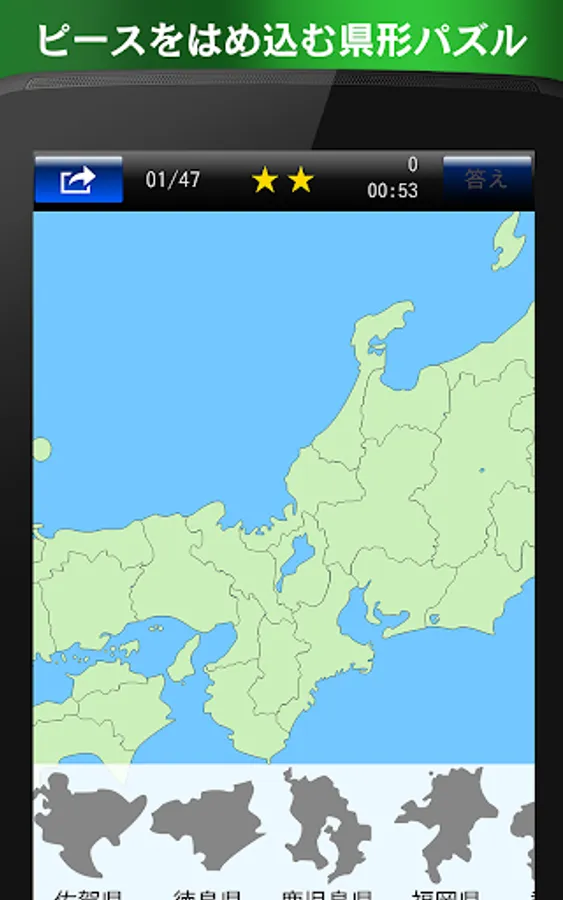Please to complete the map of Japan with correctly fitting a piece of county form in the "puzzle" mode. In beginner and advanced, you can enjoy a 376-question puzzle problem.