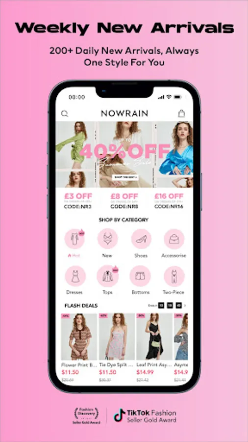 Welcome to NOWRAIN, the winner of TikTok Fashion Seller Gold Award in 2022. As a women's fashion online store, here we got everything you love about. We launch thousands of new women's fashion items weekly, with exciting sales promotions each week. Now we are expanding our product line, covering dresses, two-piece sets, tops, bottoms, active wears, lingerie, shoes and accessories. Go and get an account to keep track of your orders, get delivery details, access previous purchases history and more, like chicme, boohoo, shein, asos, zara. Simply download our app and start shopping with affordable women's fashion at your fingertips.