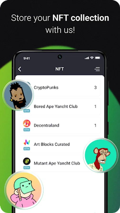 Store tokens on multiple networks including Ethereum (ERC-20), Binance Smart Chain (BSC), and Solana, as well as Ethereum and Solana NFTs.
