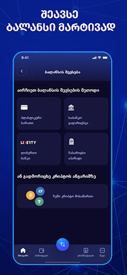 MyCoins fiat balance can be topped up with a plastic card, as well as by bank transfer, Liberty Bank or cash register.