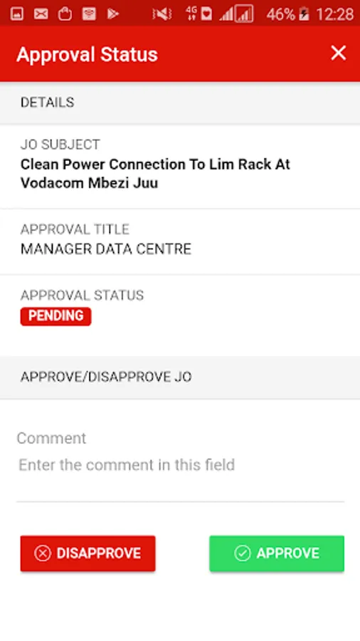 JoMobile provides mobile access to the backend Change Management System (JobOrder System) for managers to authorize and comment on change requests.
