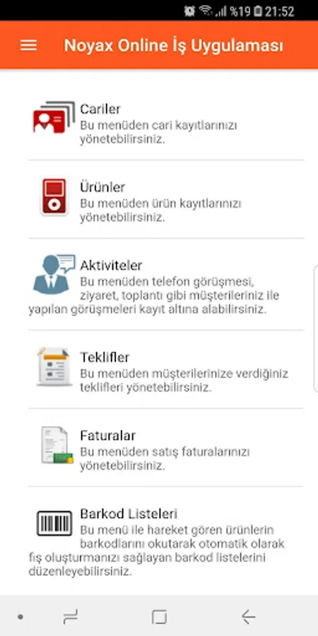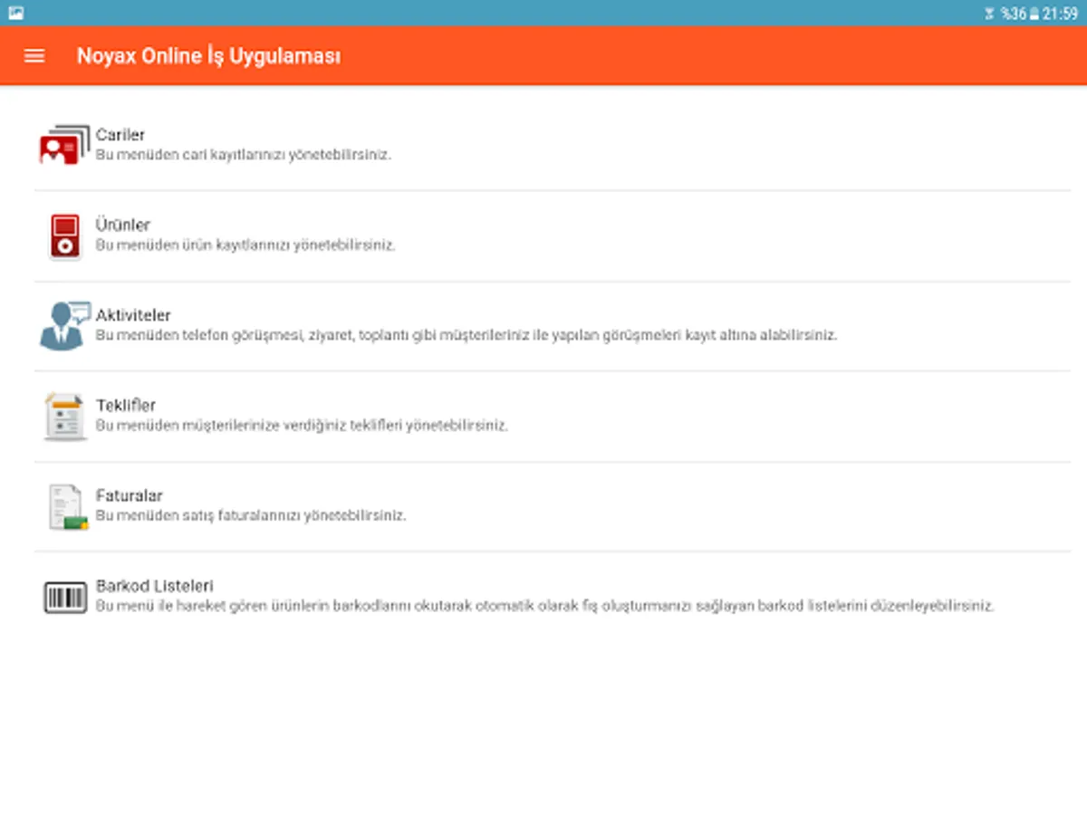 Noyax, the purchase and sale of a commercial company, finance, accounting and inventory transactions easily and efficiently in a web-based accounting program that done. Noyax android client is also designed to provide services to mobile users. Access your current product list and mobile apps, organize bills, you can make cash and credit card receipts for the field. Make that these transactions will be recorded, even if the internet connection and wiring is provided Noyax transferred to the central database. In addition, current balances and statements online instant reports and can display your stock situation.