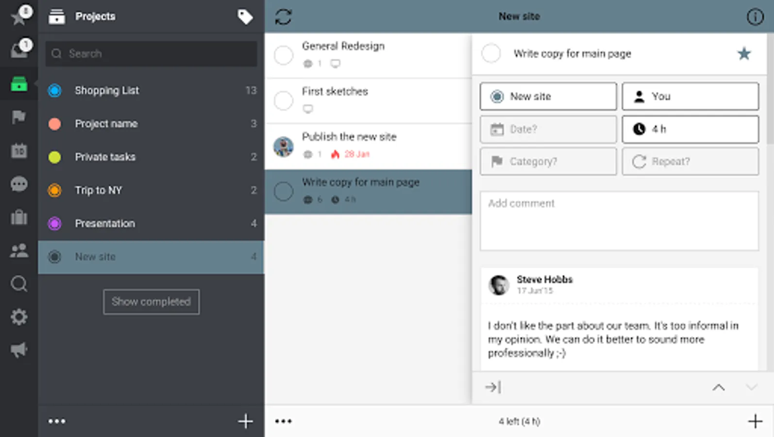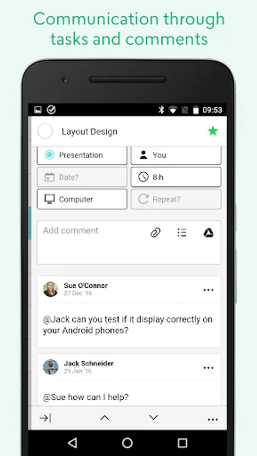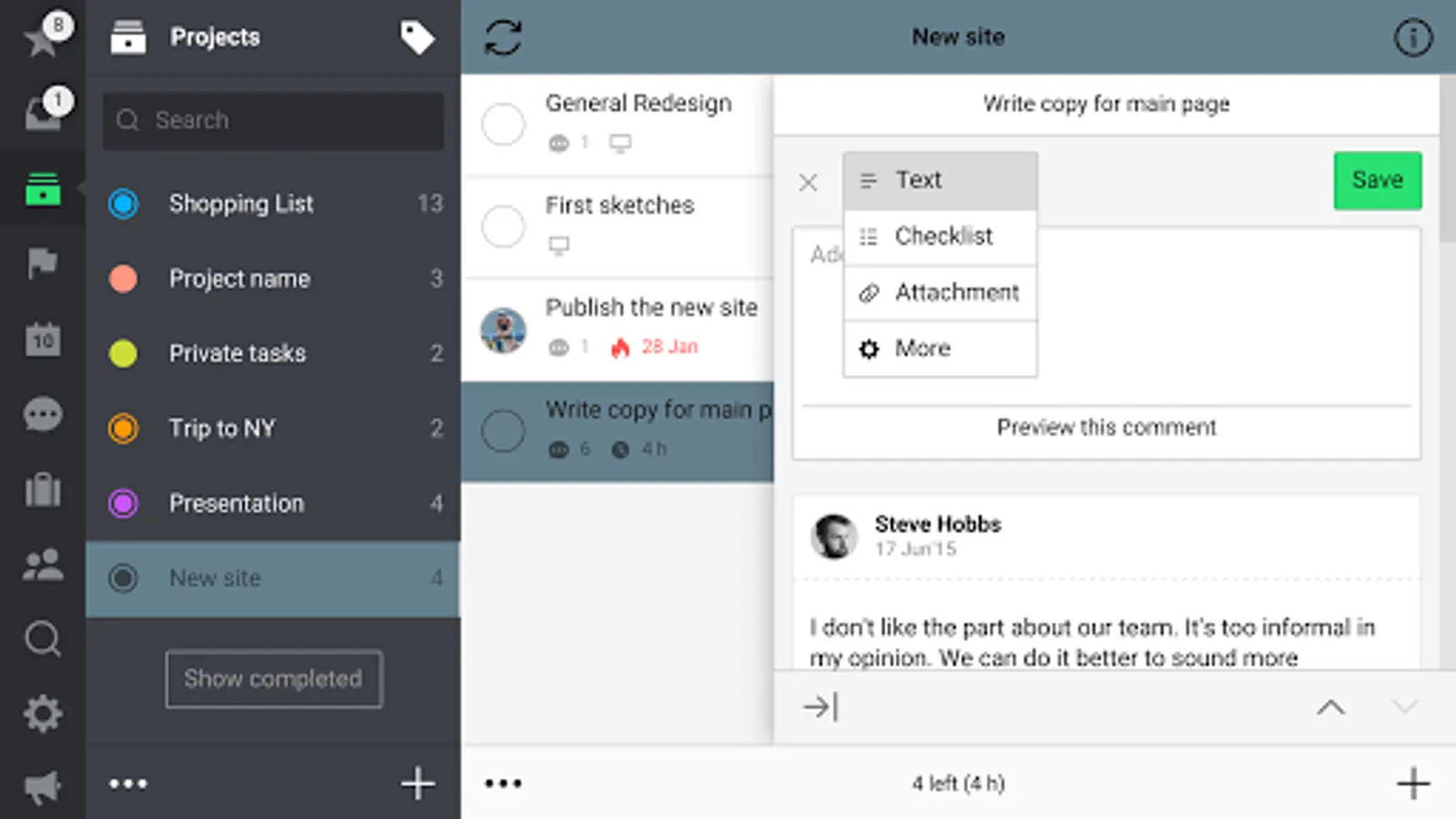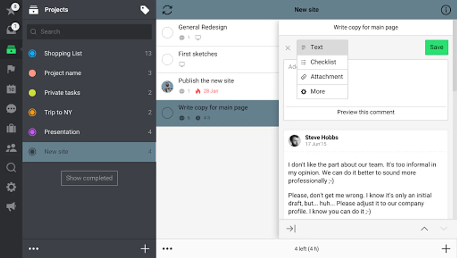 Add comments to each task easily and in any format - text, checklists, photos, documents - use Google Drive as well as any of the popular cloud storage platforms.