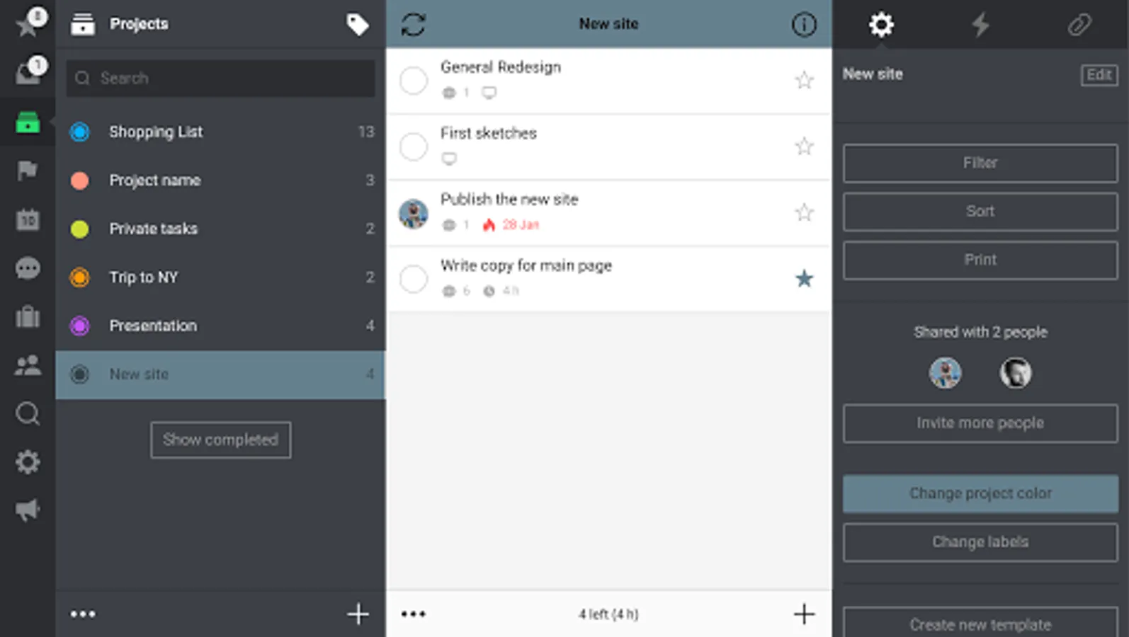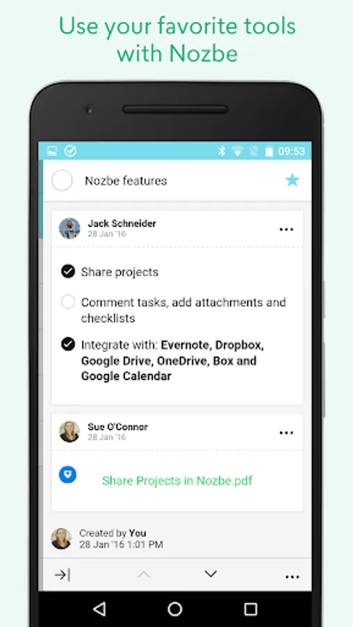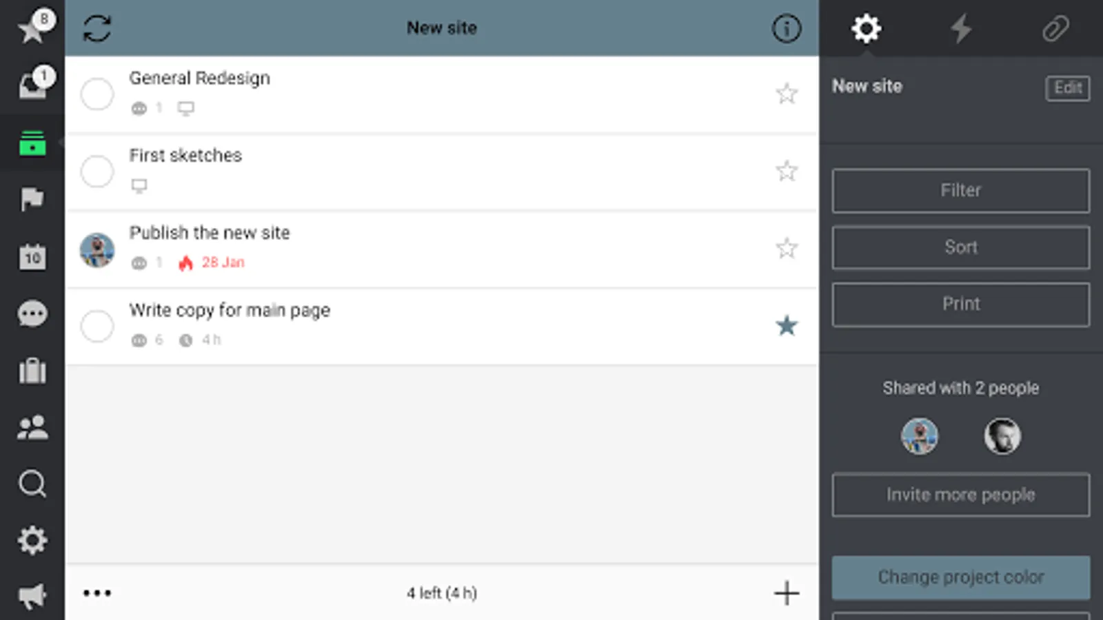 No more emails, CCs, forgotten attachments, etc. With Nozbe shared projects communication and responsibility in your team will become clear and less distractive. Focus more on getting tasks done instead of managing them.