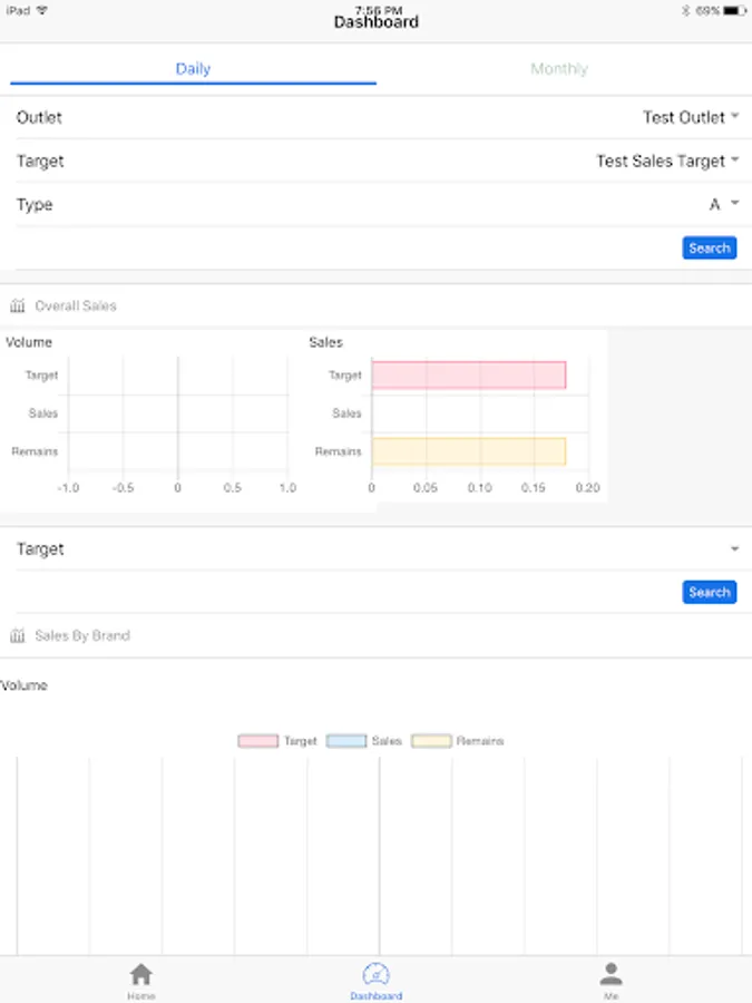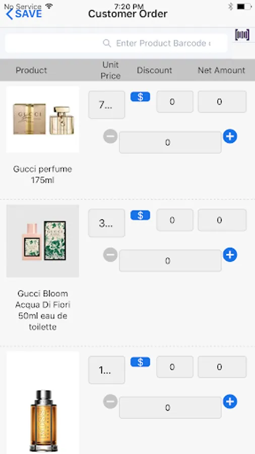 Promoter can search product using barcode or free text. Sales input can be using +/- button for keypad.