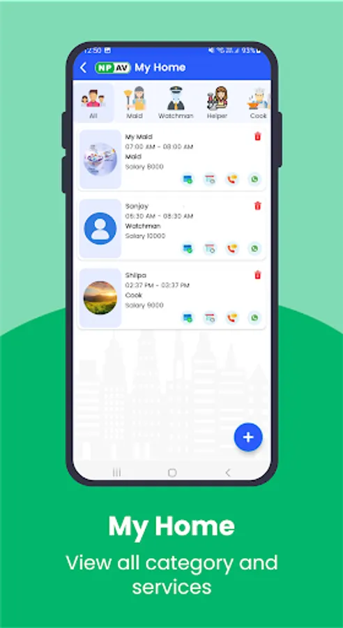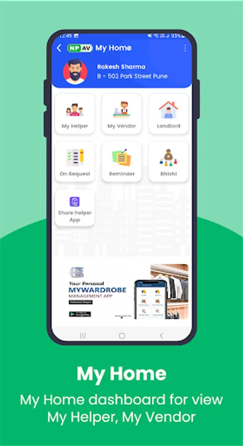 - In NPAV My Home, you can note absentees & payments of your Helpers, Milkman, Sweeper, Maid, Watchman, Paperwala, Cook, Iorn-wala, Car-cleaner, Driver, Garbagewala, etc