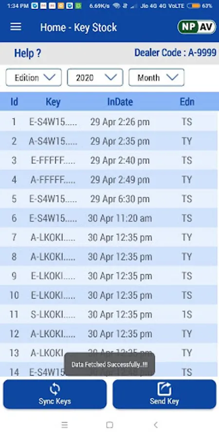 Dealer can view Graphical representation of Instock & Sold Stock Keys