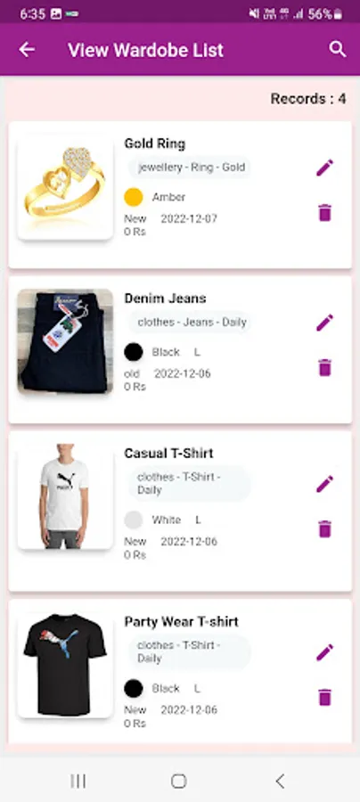 Manage your accessories, jewellery, clothes using Phone. Convert your Physical Wardrobe to digital Wardrobe. Create & Choose your outfit in one click. Search using color. Know your last outfit for last occasion.