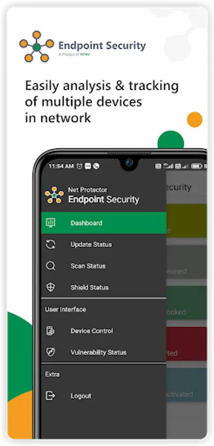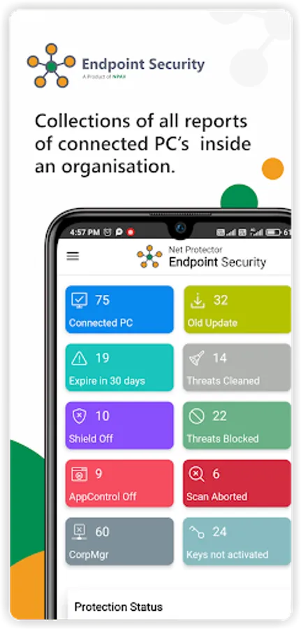 NPAV Endpoint security application shows the data gathered from Endpoint security Web(NAPV Admin console). The admin console(Web) provides features to change the settings of pcs connected through a network inside an organization by the system administrator.