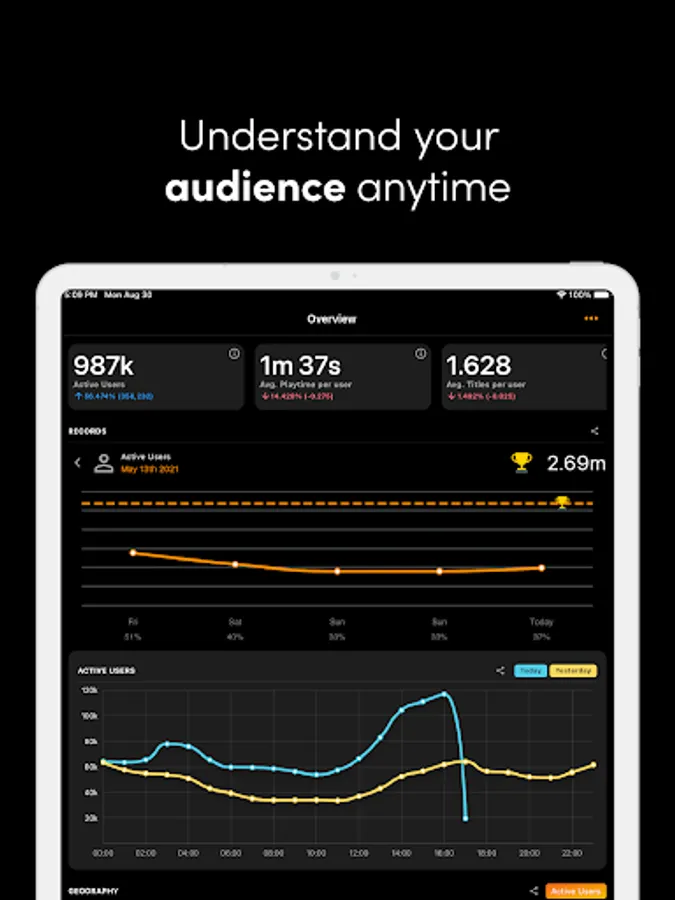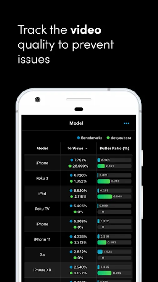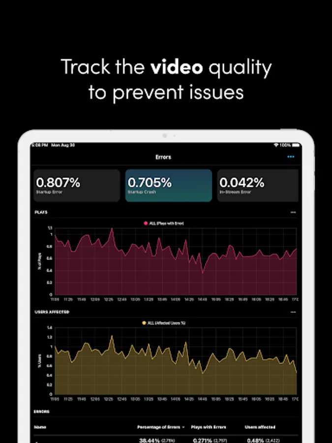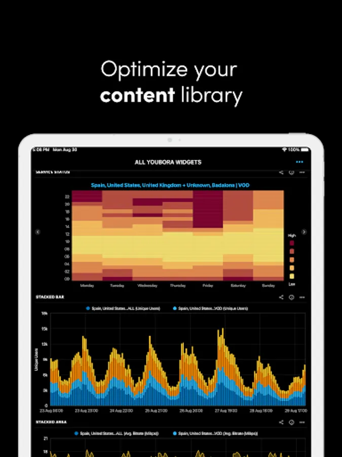 Viewer intelligence. From a quick snapshot of your audience to real-time KPI insights. Stay up to date on metrics affecting content preparation and end device experience. Deliver top video streaming experiences, away from your desk.