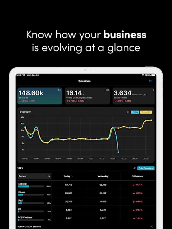 NPAW Suite Mobile App allows online video providers to gain 24/7 visibility over their entire service on the go. Access all the knowledge that the NPAW Suite offers from the palm of your hand.