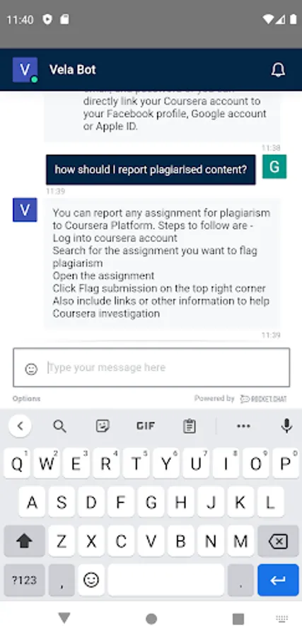 -For complex questions, learners can connect to human experts via VELA and get responses within 24 hours.
