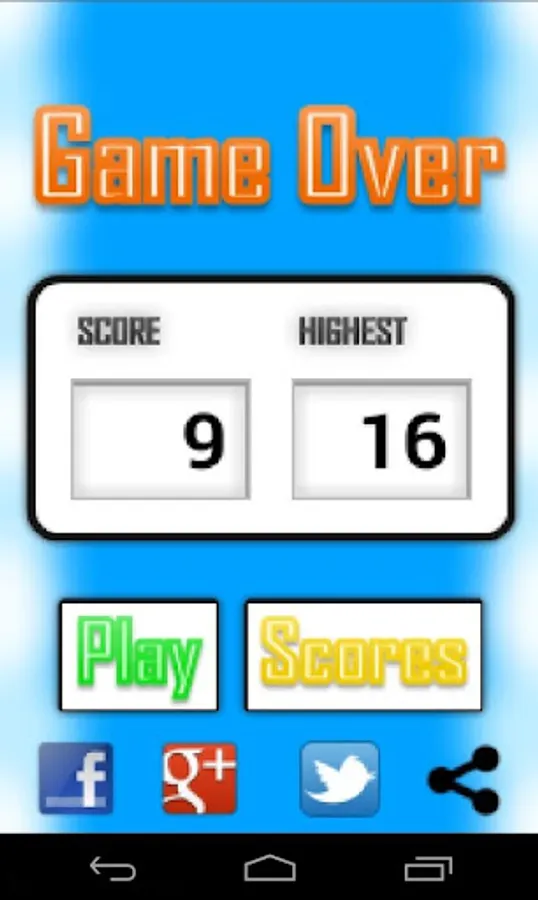 Share your scores on Facebook / Twitter / Google+ simply right from inside the game.