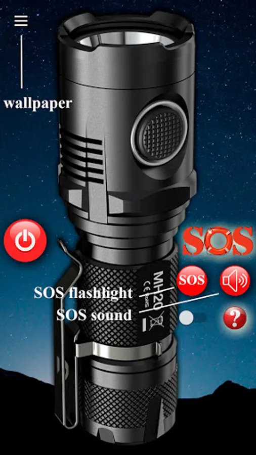 In addition to the flashlight function, the application has a mode for sending a SOS signal with both sound and light. And you can also choose the wallpaper for your application.