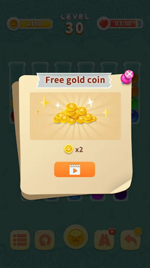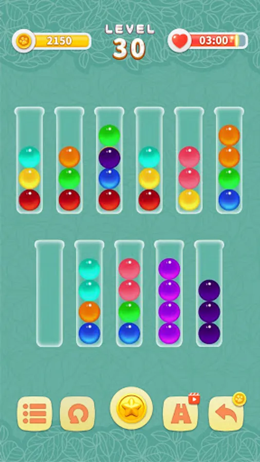 3. The goal is to stack all the balls of the same color in one test tube. If you can't complete the game in the middle of the game, you can add test tubes to make the game easier.