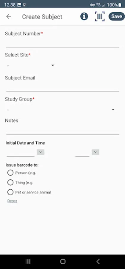 - Scan Bar codes to quickly add research information to the database including Drivers Licenses, Lab Codes, Device Codes.