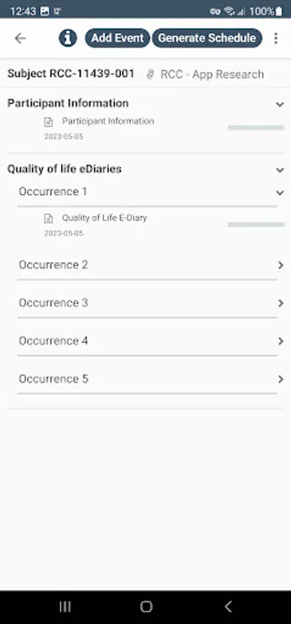- Capture source data (like clinical outcomes assessments) directly from the participant securely by restricting access to the rest of the app as they enter their data.
