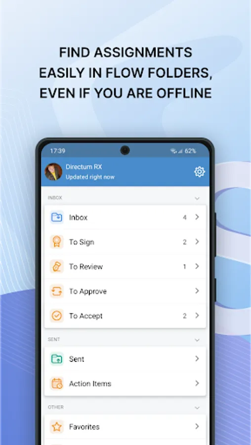 Important: The app is available on Android 7 or higher and supports Directum RX, Directum 5.6 – 5.8.