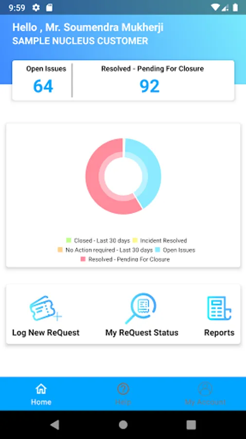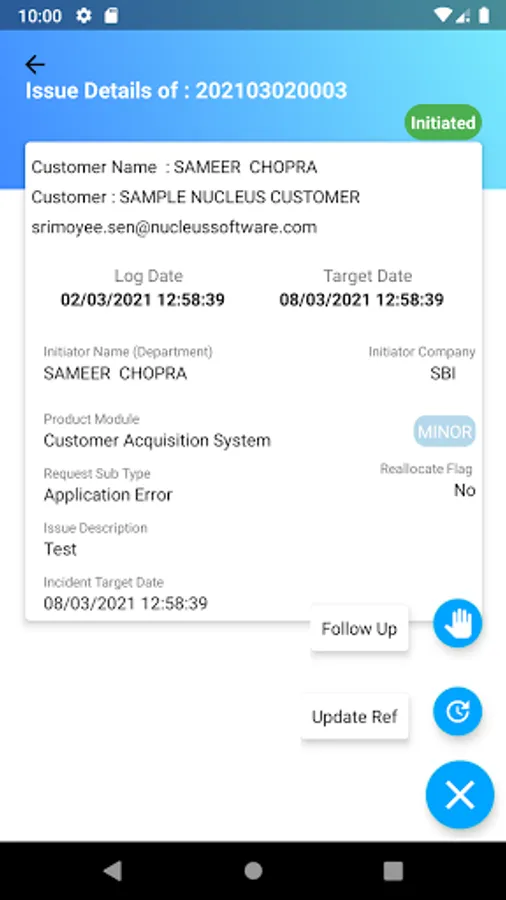 - Search Issues by their Reference Number based on their Current Status and user can update status , follow up against the particular Request.