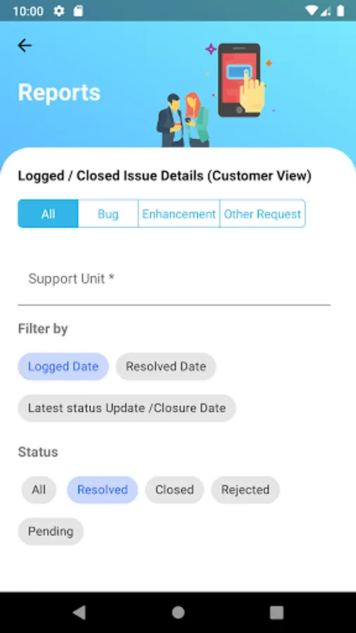 -You can quickly log Issue with a resolver, or give elaborate details like severity, module, Summary , and more, to provide a clearer understanding.