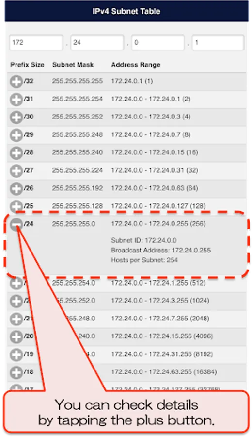 By giving only IP address, you can know information such as address range, broadcast address, number of hosts etc. per subnet mask(/32 ~ /1).