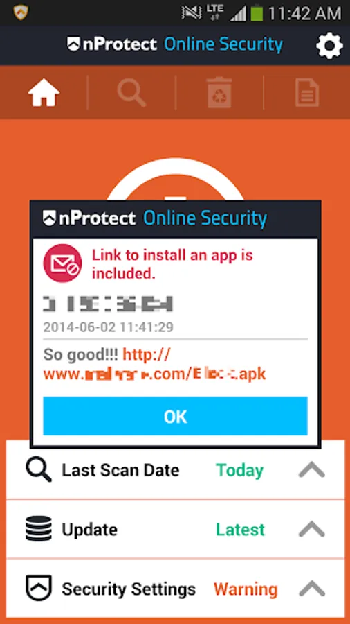 Scans text messages (SMS) to detect malicious URLs and reports them.