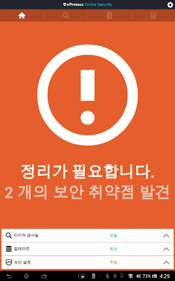 The color of the application changes according to the security status of the device, allowing users to detect threat immediately.