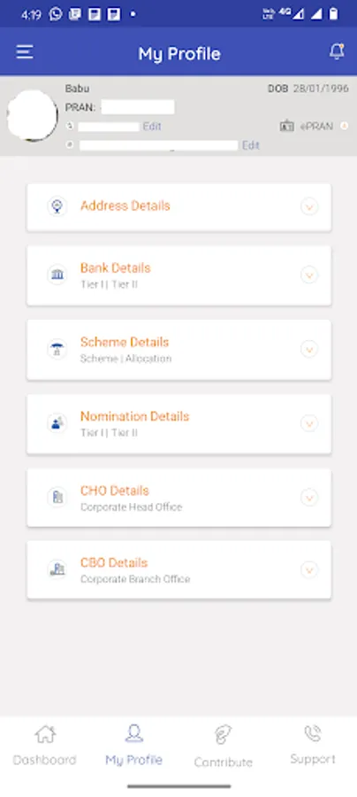 ♦ Change contact details like Telephone, Mobile no. and Email ID.