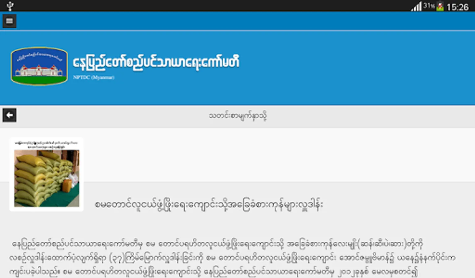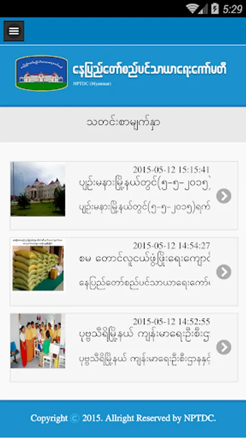 This application provides informations of Naypyitaw City Development Committee news website(www.nptdc.gov.mm).