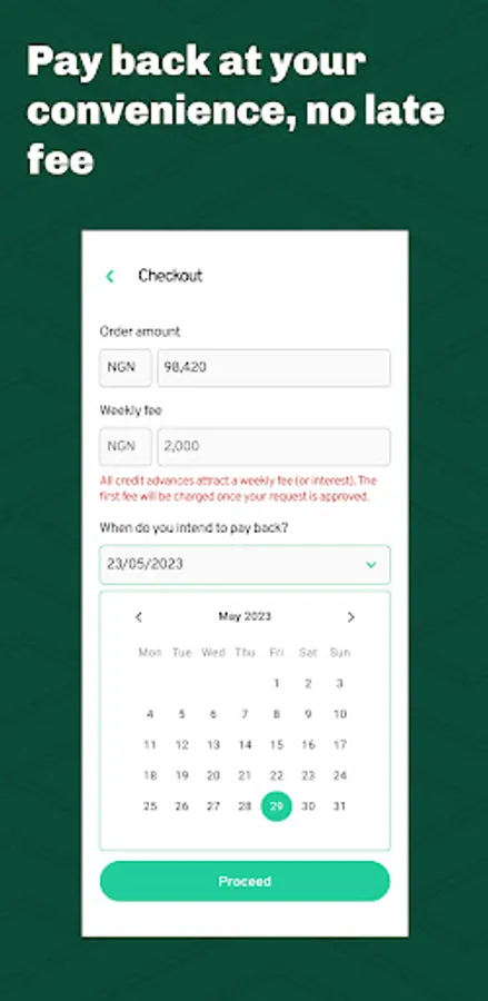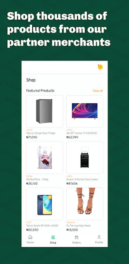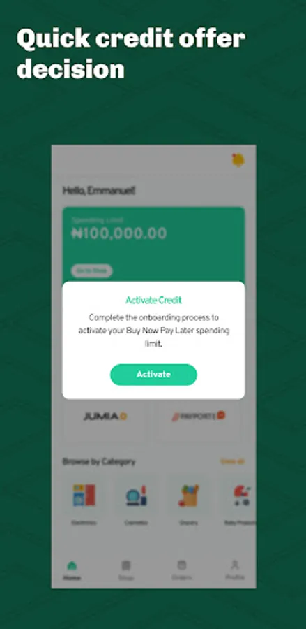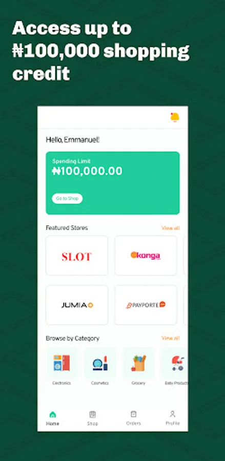 2. Get credit up to 100,000 naira with any of our merchants.